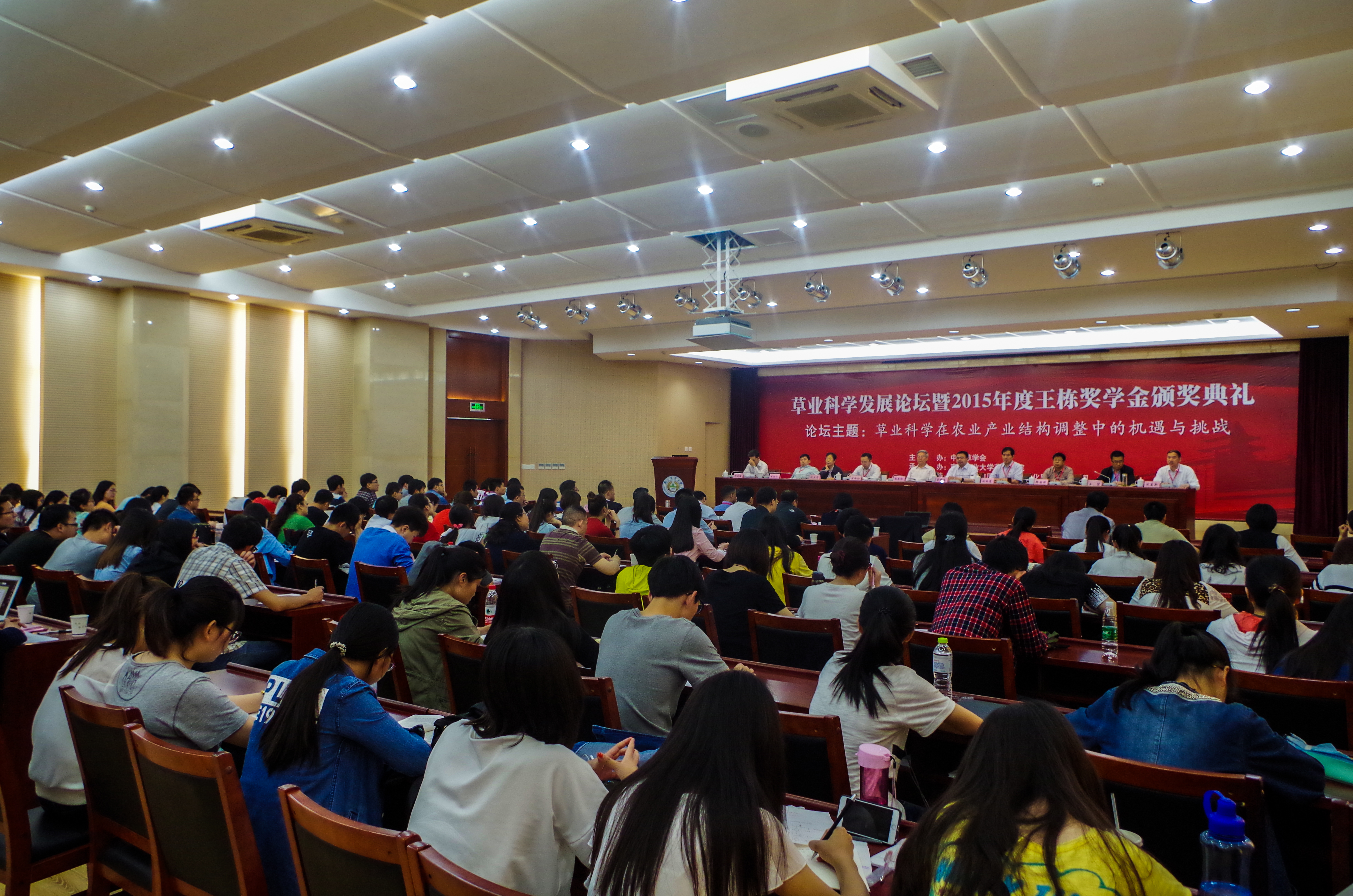 承办的草业科学发展论坛暨2015年度“王栋奖学金”颁奖典礼在金陵研究院三楼报告厅举行。颁奖典礼由中国草学会秘书长王堃教授主持。论坛主题为草业科学在农业产业结构调整中的挑战与机遇。