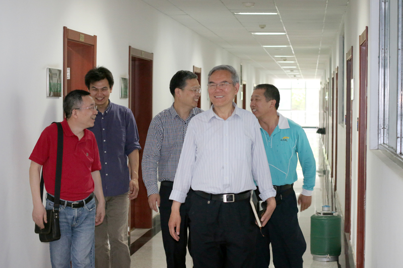 在理科南楼的实验室。他听取了各实验室负责人的简要介绍后,对各实验室的建设、使用情况表示欣慰。在实验室,他亲切地向正在工作的研究生询问研究内容和研究进展,并勉励他们刻苦勤奋学习,争取更大进步。