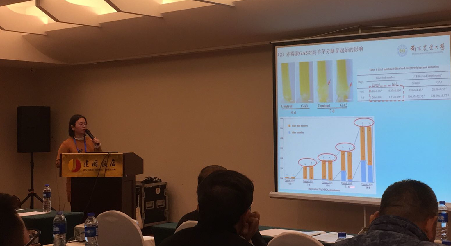会议期间,动漫屋 郭振飞教授分别做了题为“动漫屋 草学学科建设概况”和“黄花苜蓿AIRI2功能分析”的分组报告,杨志民教授做了题为“华东地区野生草坪种植资源收集与产业化示范应用”、徐彬副教授做了题为“抑制黑麦草叶片衰老的遗传因子探秘”、庄黎丽老师做了题为“赤霉素与细胞分裂素拮抗抑制高羊茅分蘖芽伸长”、张夏香博士后做了题为“脱落酸介导高羊茅获得性耐高温的生理机制”、张敬博士后做了题为“乙酰化修饰调控多年生黑麦草抗旱机制初探”、邢静博士做了题为“多年生黑麦草LPCYP82F1/F2/F3调控盐胁迫条件下种子萌发的机制研究”的分组报告。此外,郭振飞主持了“S6草学教育+草地资源+经济与政策”、杨志民主持了“S5草坪与运动场场地管理”分会场报告。