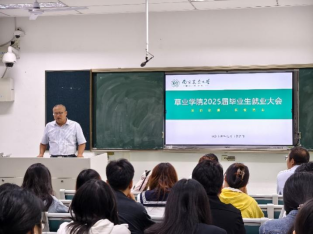 2025届本科生和研究生就业动员会。学生工作处大学生就业指导与服务中心主任周建鹏,我院党委副书记韩立新、学生工作办公室主任兼团委书记武昕宇,以及全体2025届本科生、研究生参加动员会。动员会由韩立新主持。