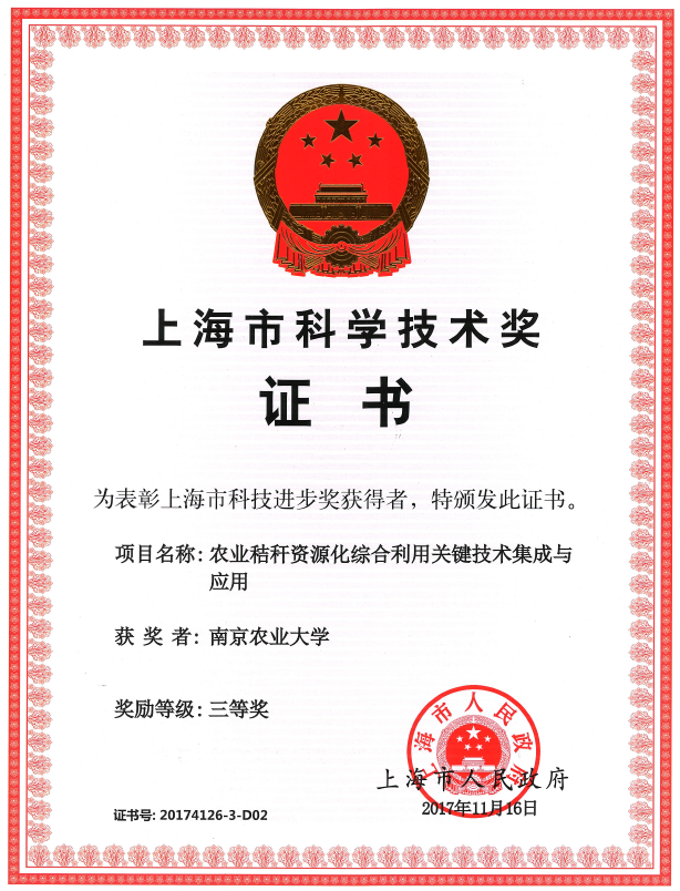 邵涛教授团队与上海市农业科学院等单位联合申报的《农业秸秆资源化综合利用关键技术集成与应用》获上海市科技进步奖三等奖。动漫屋