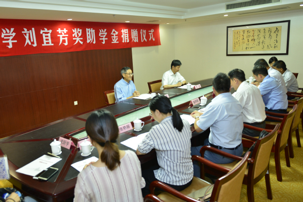 对奖助学金的使用作了表态发言;杨明介绍了学校校友会基本情况。他们同时对许若军夫妇回母校设立刘宜芳奖助学金这种大爱精神表示钦佩,对在校学生给与的无私帮助表示感谢。