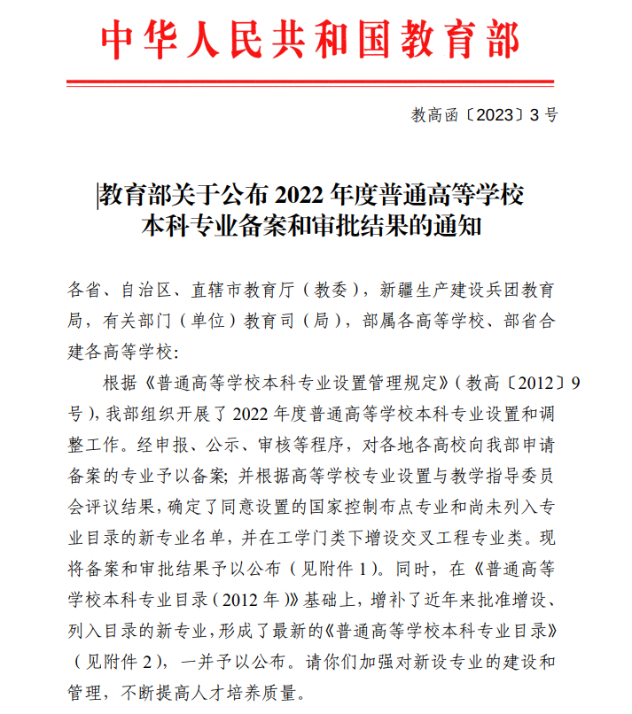 近日,教育部下发《教育部关于公布2022年度普通高等学校本科专业备案和审批结果的通知》(教高函〔2023〕3号)文件,其中动漫屋